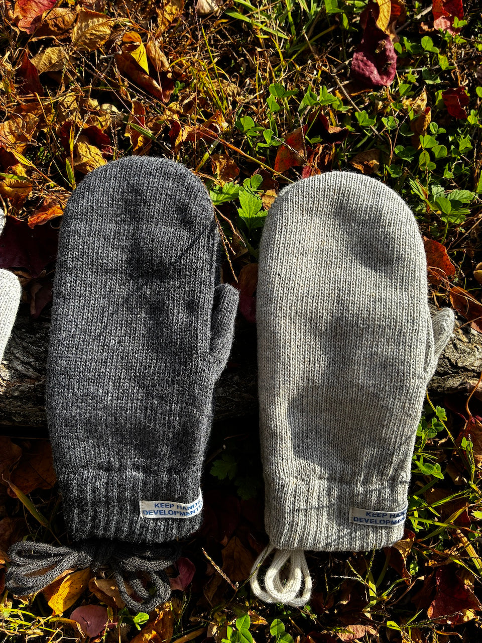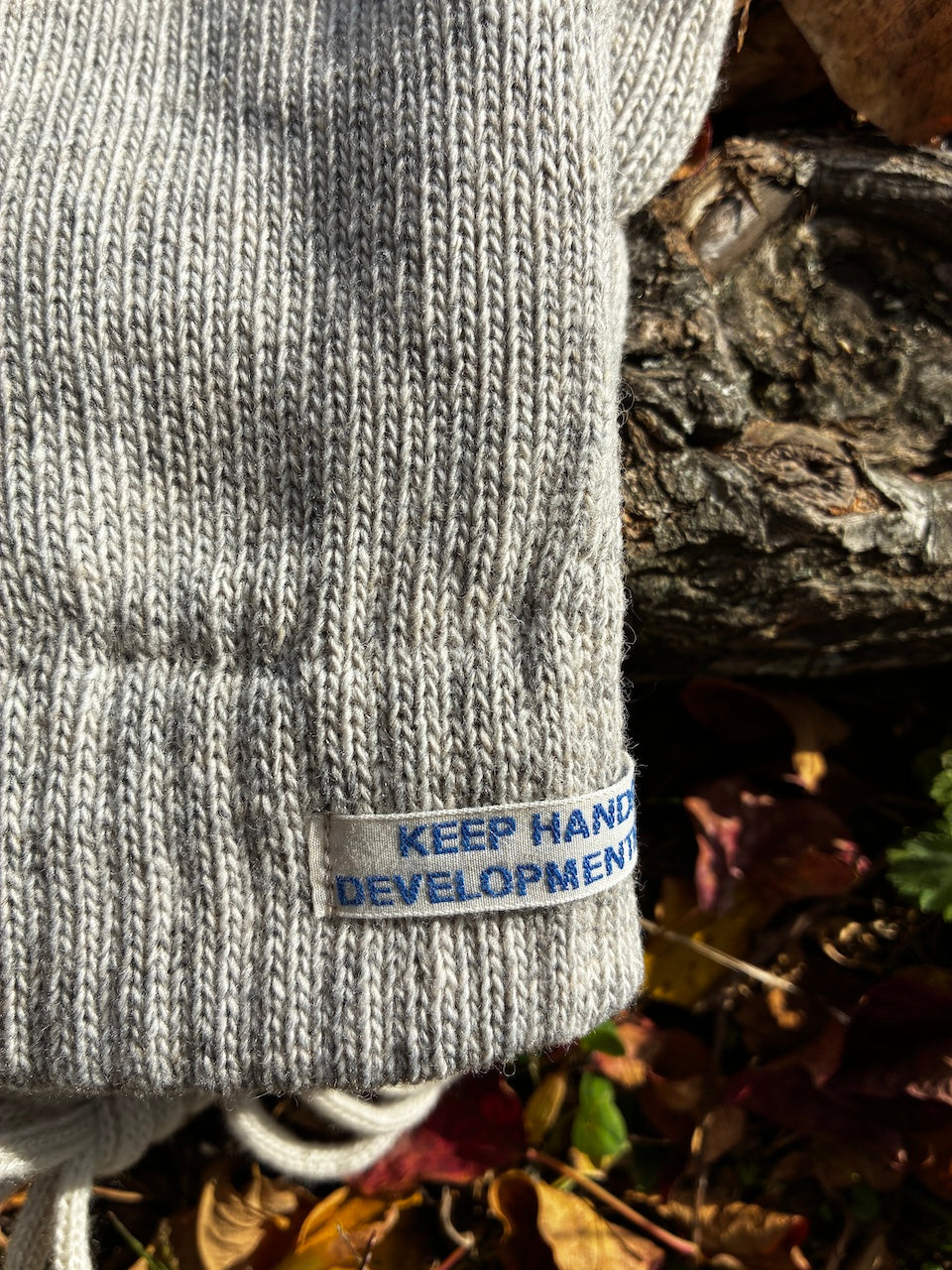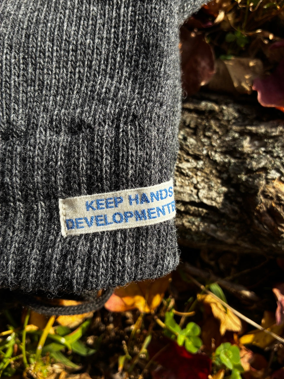 アップサイクルウールと廃棄ペットボトルを利用したリサイクルアクリルの糸を使用した手袋。