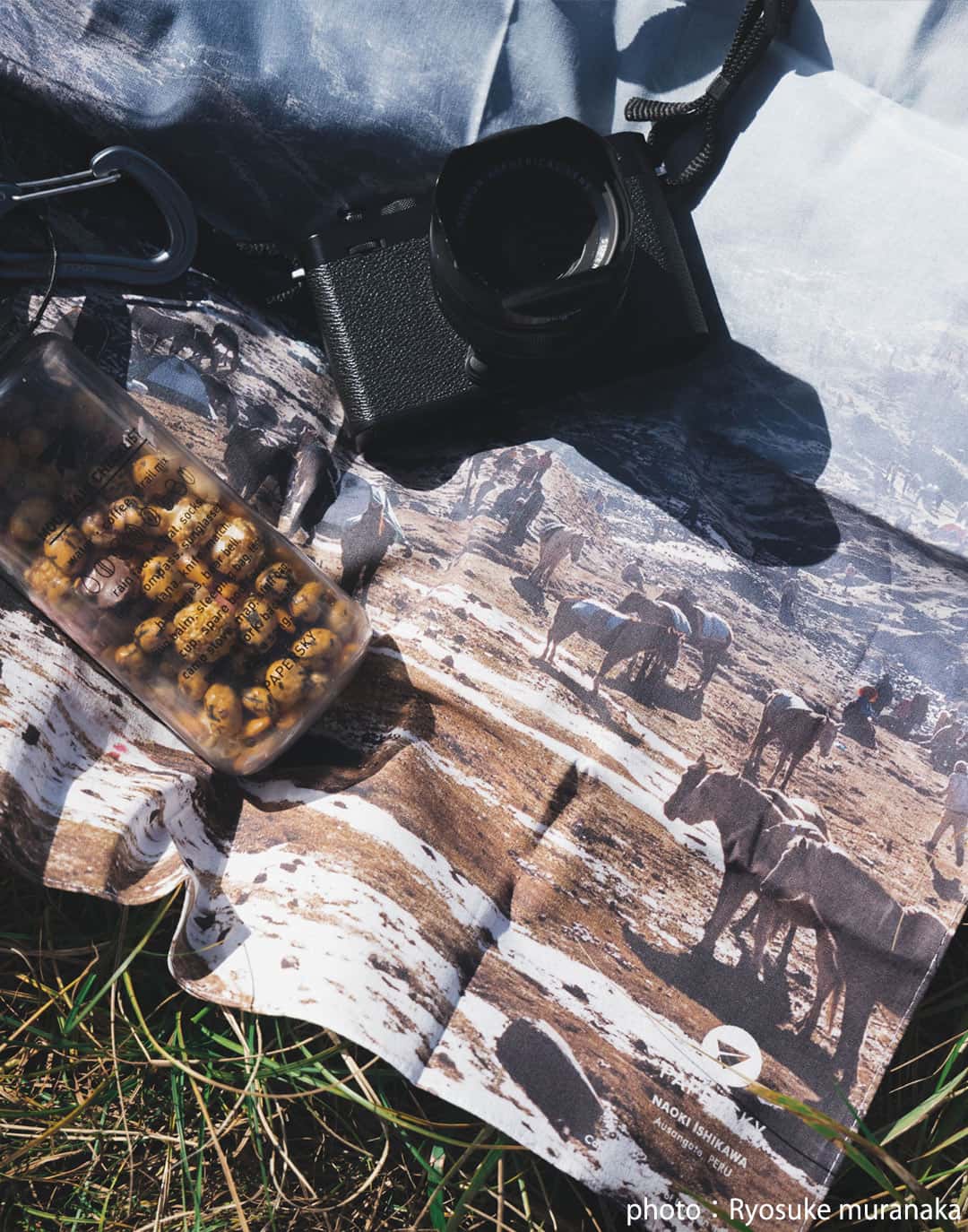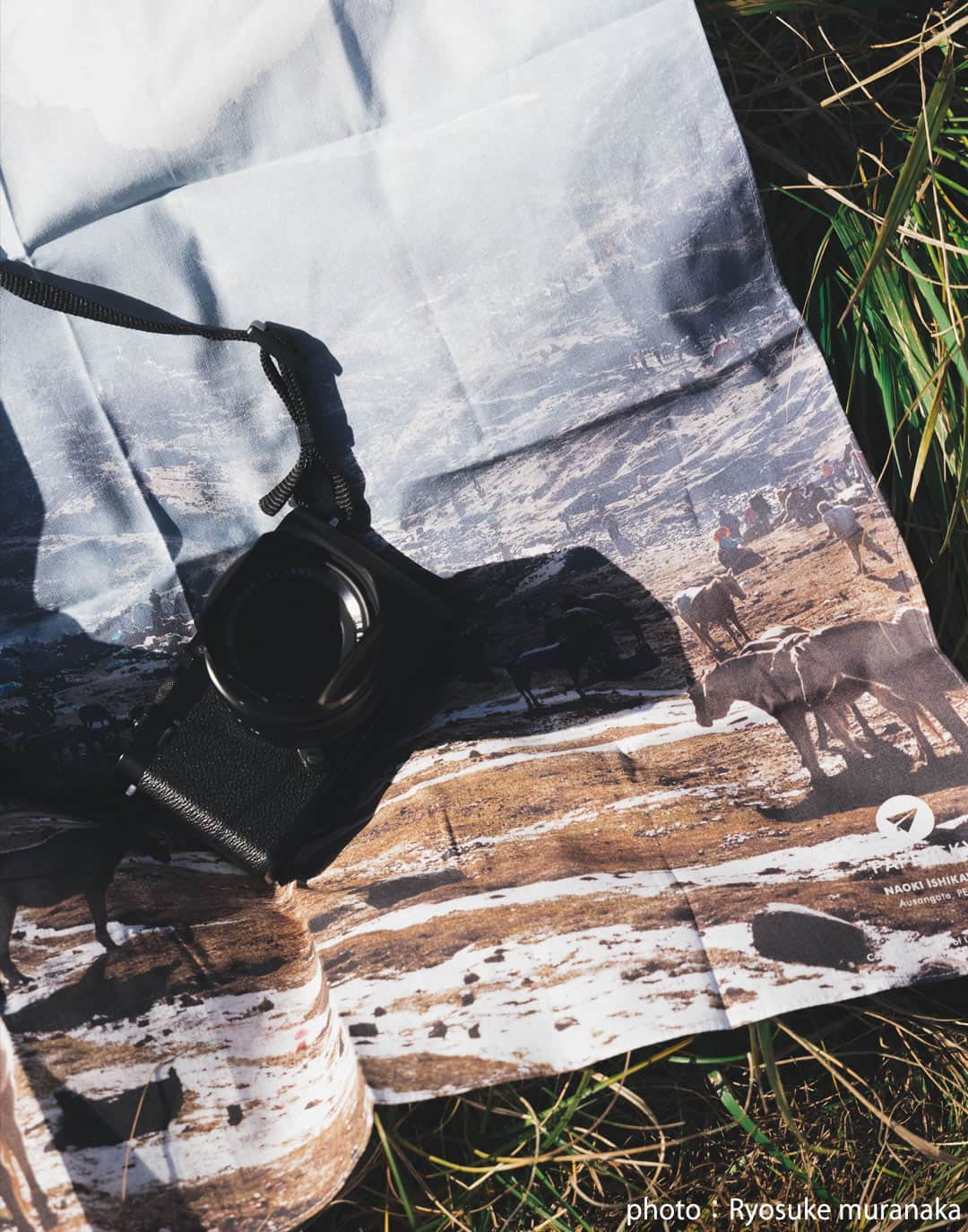 写真家・石川直樹さんの展覧会『この星の光の地図を写す』に合わせてコラボした、アウトドア・バンダナ。