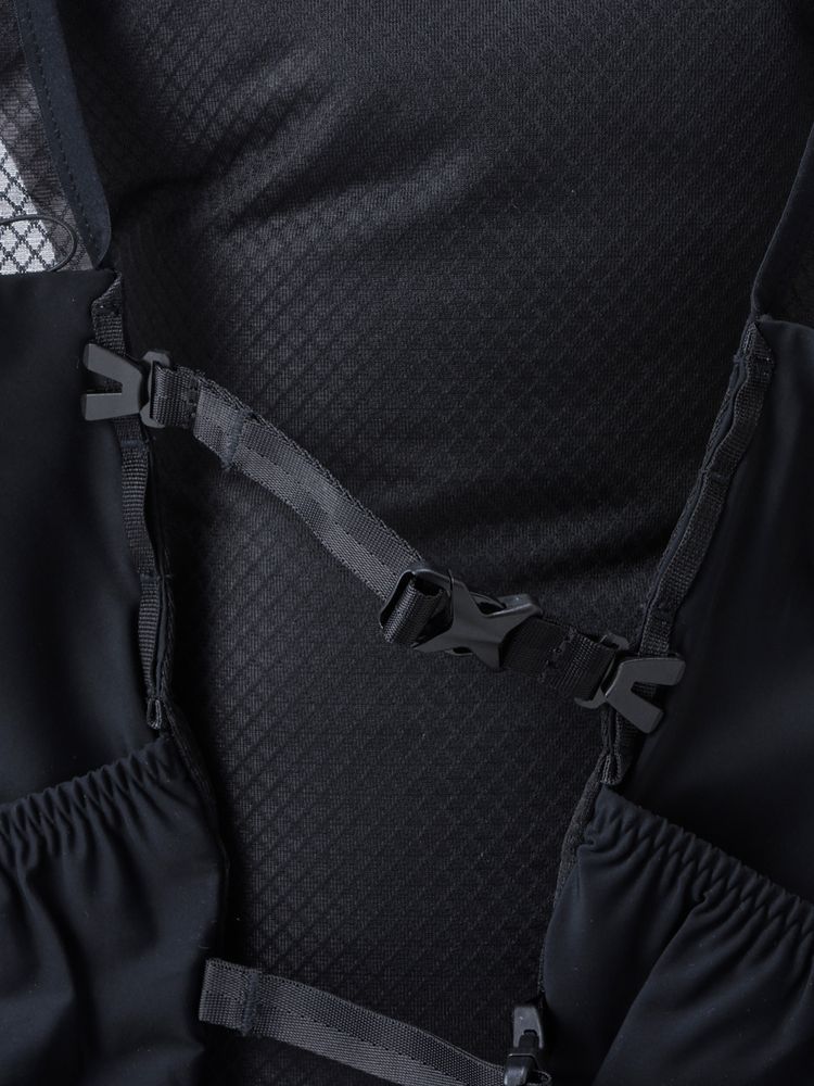 また、ショルダー部分には、上段の可動式ストラップを加えた3本のチェストストラップを配置し、フィット性とホールド性を向上させています。