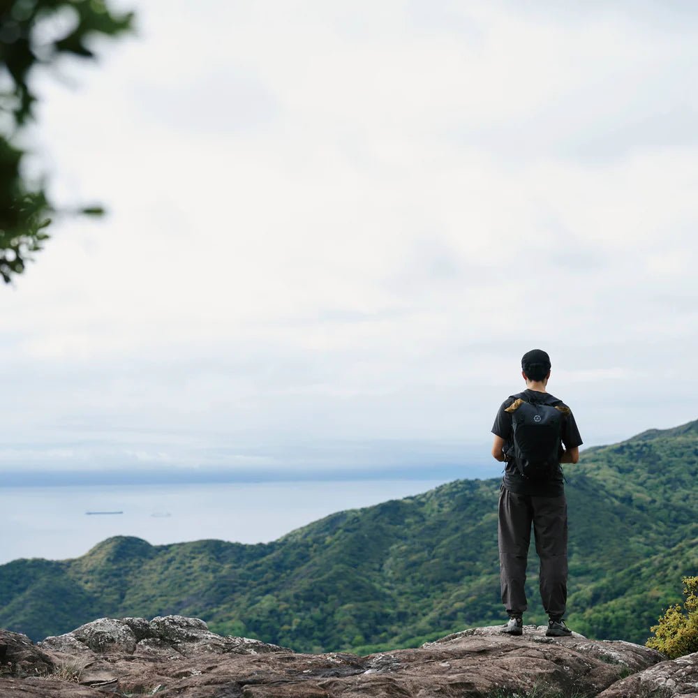リサイクルナイロン100%の生地を採用。ポリウレタンを入れずともストレッチを出す捲縮糸を使い、保水による生地ダレもなく、パリッと爽やかな仕上がりとなりました。また、裏面は凸凹状になっており肌離れの良さも併せ持っています。