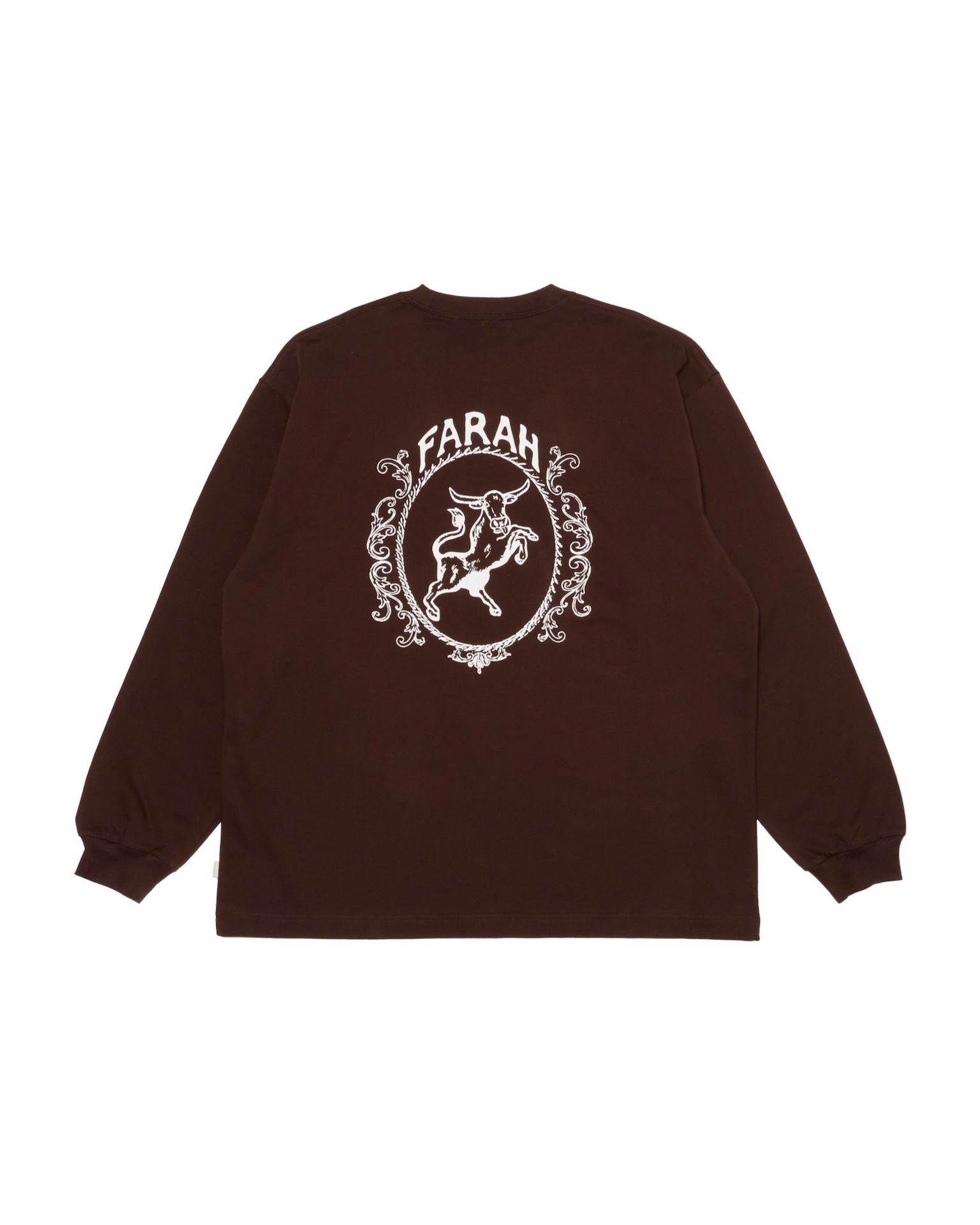 【FARAH|ファーラー】PRINTED GRSPHIC L/S TEE"TEXAS LONG HORN EMBLEM"/プリントグラフィックL/Sティー”テキサスロングホーンエンブレム(BROWN)