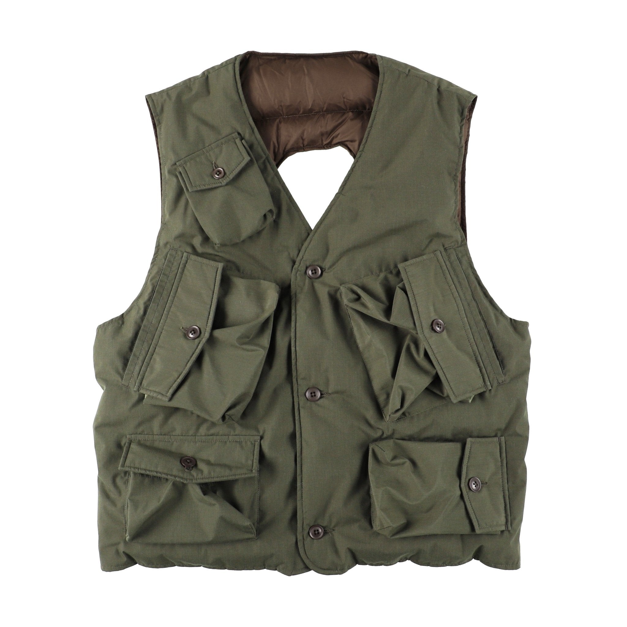 軍用のC-1ラジオベストをベースに再解釈したユニークなダウンベスト。