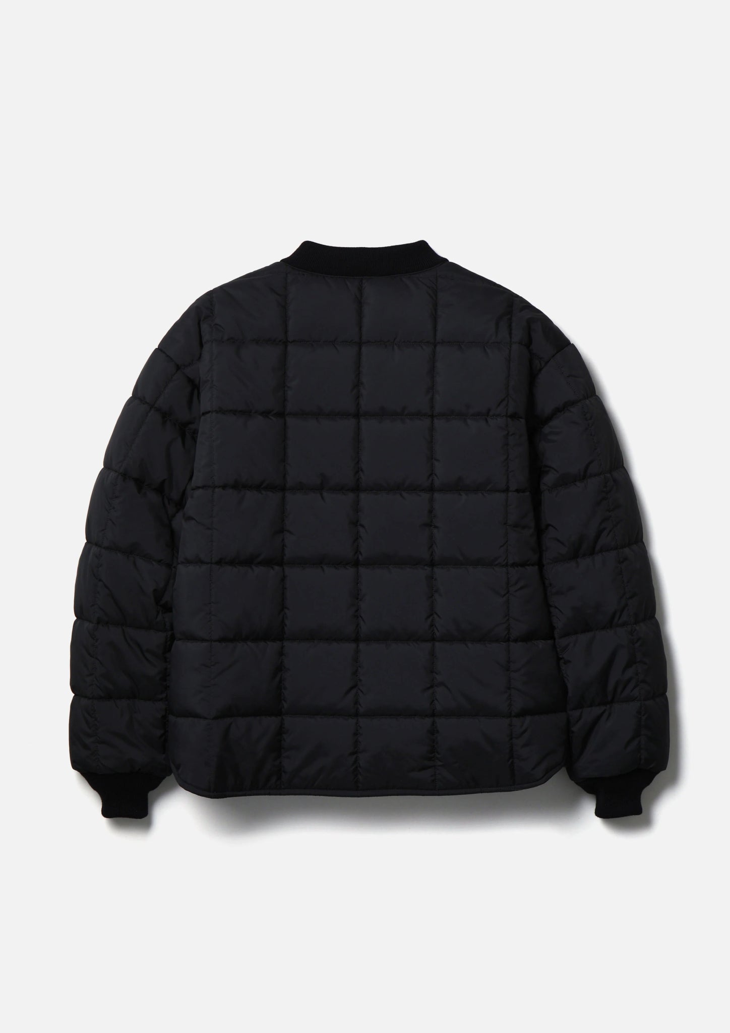 撥水性を備える異なるポリエステルタフタ素材を両面に使用したリバーシブル仕様のパッディドジャケット。