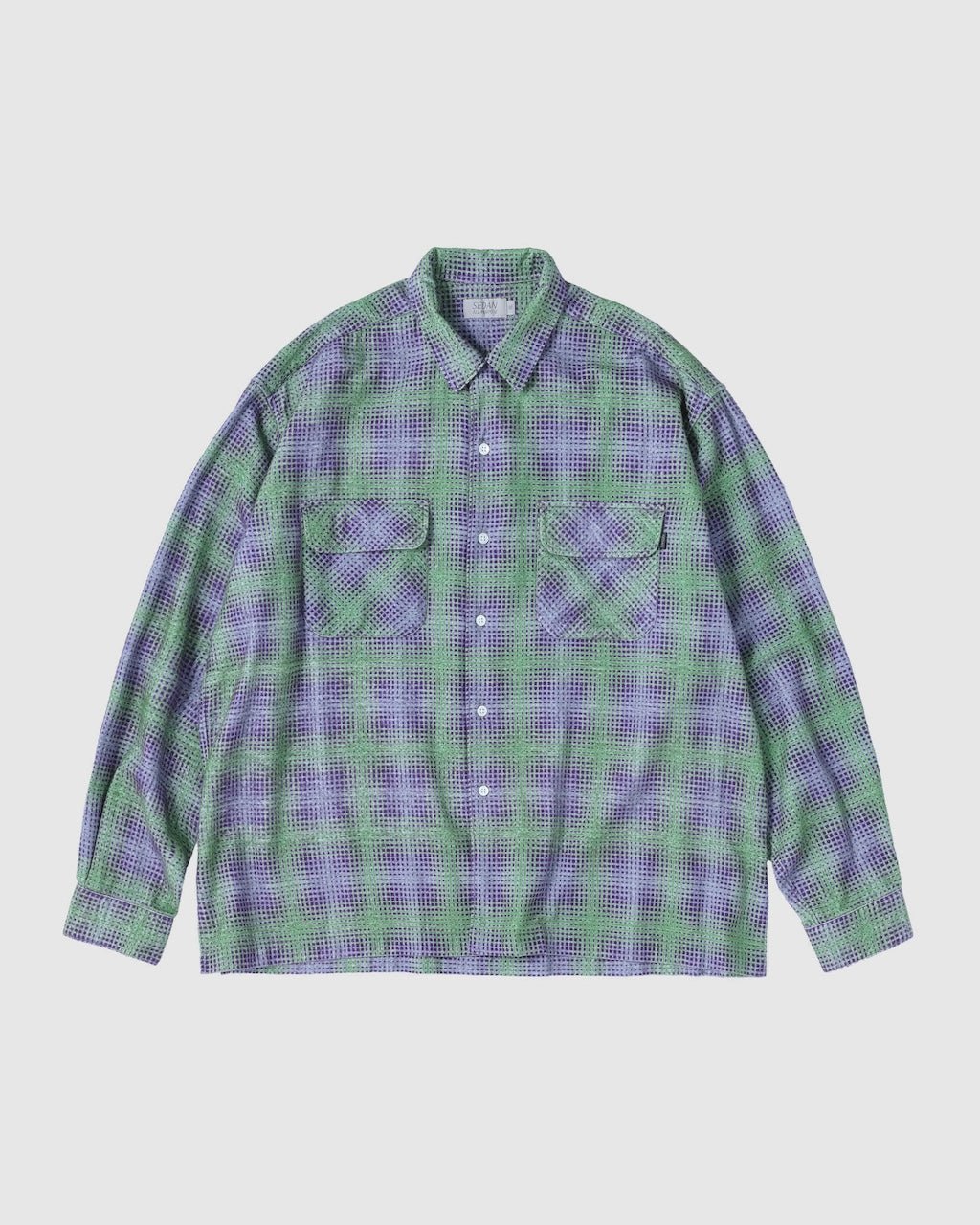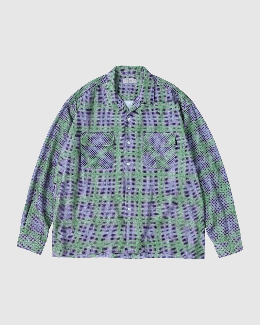 【SEDAN ALL-PURPOSE|セダンオールパーパス】PRINTED PLAID FLANNEL OPEN COLLAR SHIRT/プリンテッドプッラドフランネルオープンカラーシャツ(BRICK × BURGUNDY , GREEN × PURPLE)