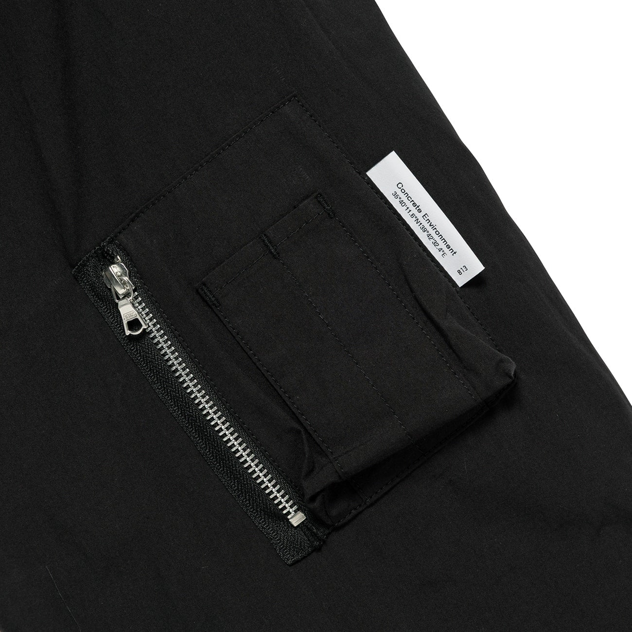 フロントに左右対称のポケットと左袖にポケットを配し、袖口はベルクロの仕様。
