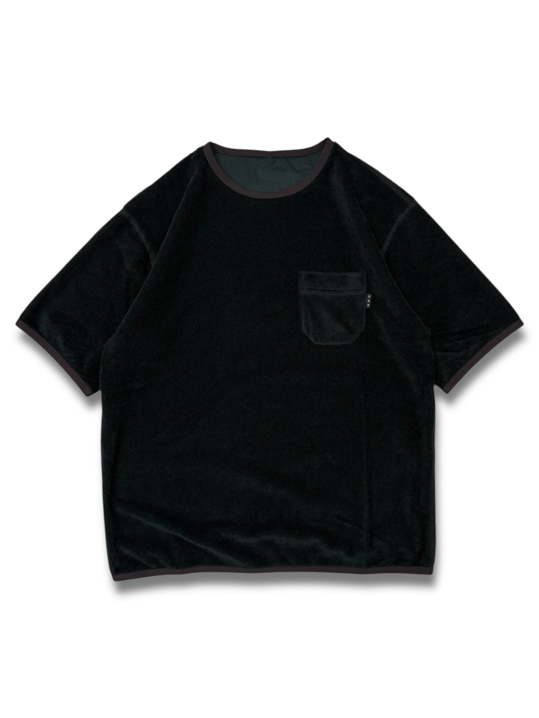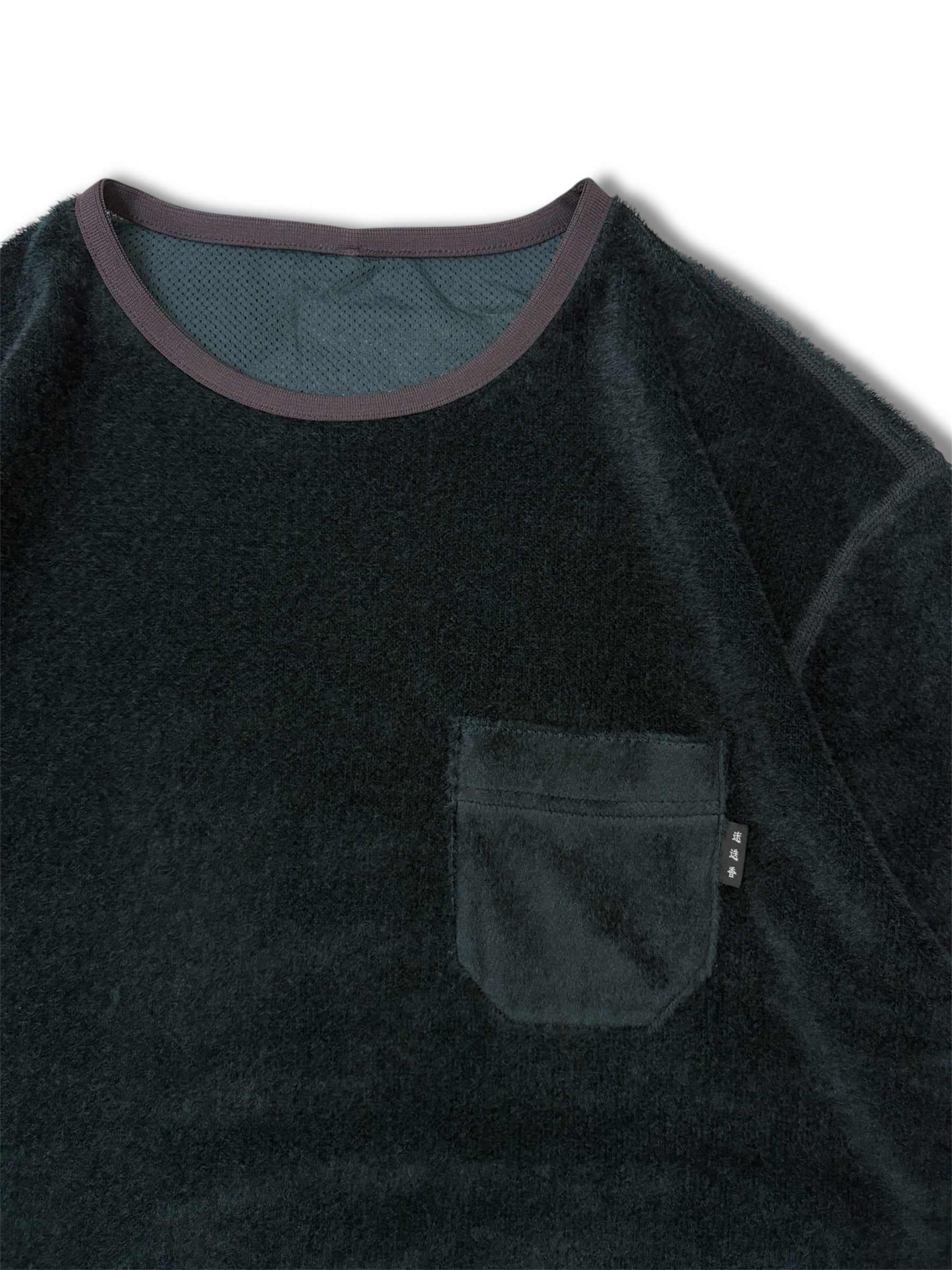 タウンユースで着用するときはモコモコが可愛いので、起毛面を表にし、胸のポケットアクセントがある暖かなtシャツとして着用。