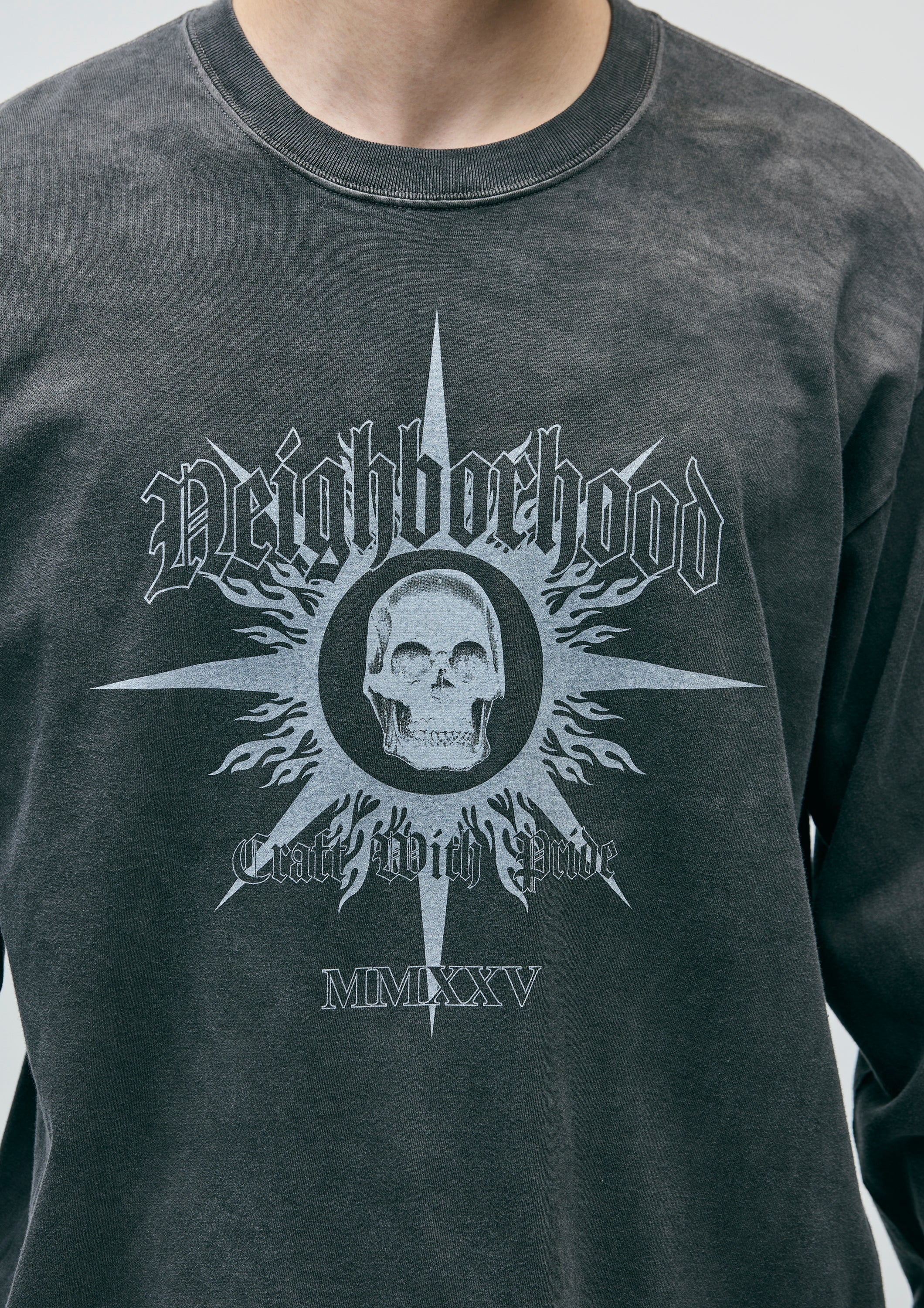 コットン天竺のオリジナルボディーをベースに、顔料染め加工を施したロングスリーブTシャツ。